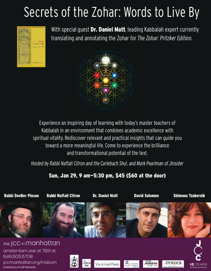 We hope you will join us for this year’s Kabbalah Day on Sunday, January 29th, from 9 AM to 5:30 PM at the JCC of Manhattan.