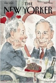 Some weeks ago, Brad Wellen commented on the cover of a recent New Yorker. “(It) depicts NYC Mayor Michael Bloomberg staring at himself in the mirror while he munches on Valentine’s Day chocolates as hearts dance around his head. Not exactly the most humble depiction of Mayor Mike, but surprisingly Bloomberg is not at all upset with the narcisstic tone of the caricature. After joining President Obama, former NYC mayor Rudy Giuliani, and the Pope as cover subjects for the New Yorker, Bloomberg was flattered at the thought of the “Bloom in Love” illustration.